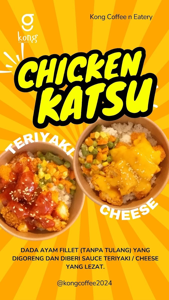 Bagi pecinta daging ayam fillet, tentu akan memilih menu yang satu ini. Daging dada ayam fillet (tanpa tulang) yang sudah digoreng di tepung yang empuk, dan disiram dengan bumbu yang lezat. Pilihan topping bumbu yang Kong sediakan adalah Teriyaki, Blackpepper, Cheese dan BBQ. Empuk dan mengenyangkan.